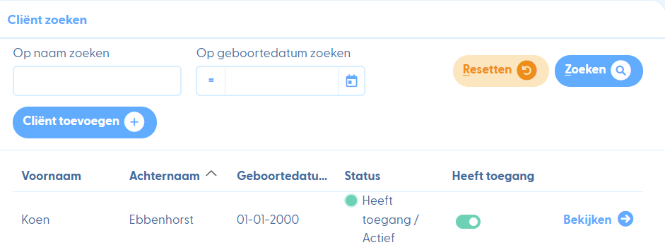 Zorg ervoor dat de cliënt is toegevoegd in het EPD-systeem.