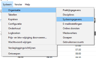 Ga in Intramed naar Systeem > Organisatie > Systeemgegevens